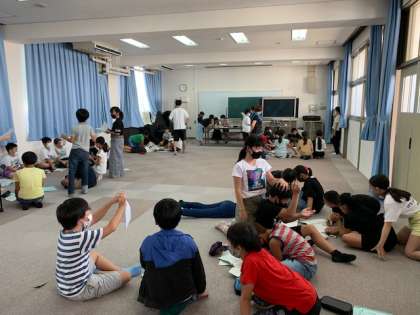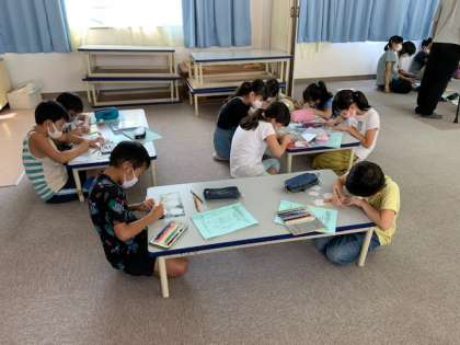 8月31日(月)6時間目、5年生はふれあいルームで林間学習の係に分かれて準備をしていました。
