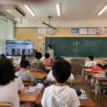 9月1日(火)1時間目、6年2組は理科で、モニターに示された問題をみんなで解いていました。主に「流れる水のはたらき」の学習が多かったように思います。