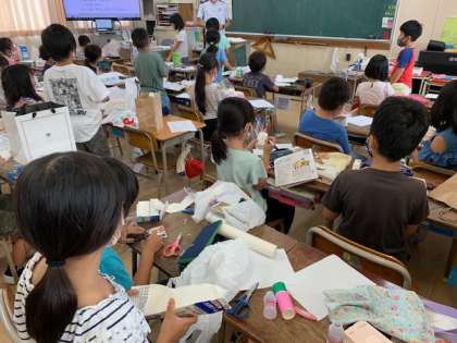 9月2日(水)4時間目、2年2組は生活科でおもちゃづくりをしていました。紙コップに切り込みを入れて作っている子に何をつくっているのか聞きますと、ピョンピョンうさぎとのことです。こだわりを持って作っているようでした。