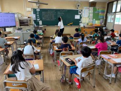 9月3日(木)2時間目、1年1組は算数で大きな数の計算をしていました。