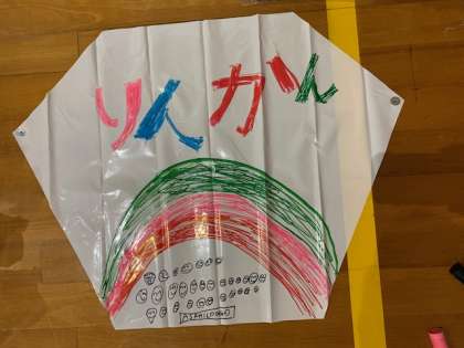 思い出に残るタコができてきました。明日朝タコを飛ばせるといいのですが・・・。