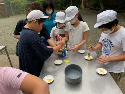 シャーベット完成!容器の蓋が開かず、班で必死に協力していました。この班のシャーベットは格別な味がしたことでしょう。