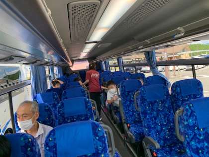 道の駅まほろばで休憩しました。バスの運転手さんに聞きますと、学校到着は4時から4時半の間だろうとのことです。2組のバスはわりと静かなようですが、1組は大合唱状態です。