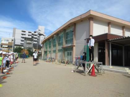 本日の全校朝会で、教育実習生の紹介をしました。