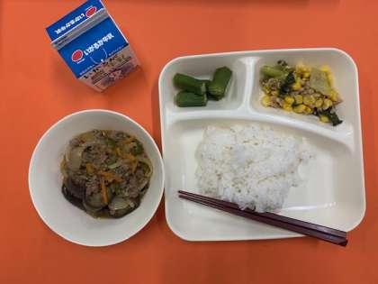 9月10日(木)マーボーなす、オクラの甘酢あえ、ツナとチンゲンサイのいためもの、ごはん、牛乳
