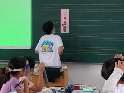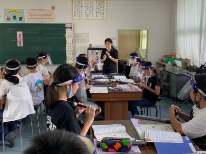 9月10日(木)6時間目、6年2組は音楽でした。リコーダーで「ブラック・ホール」という曲を上手に演奏しているのが聞こえてきました。次に「メヌエット」を練習するために「ソ」のシャープの指を確かめ、先生の吹き方を一人ずつまねしていきました。自分の番がまわってくるのをちょっぴりドキドキしながら待っている様子がうかがえました。