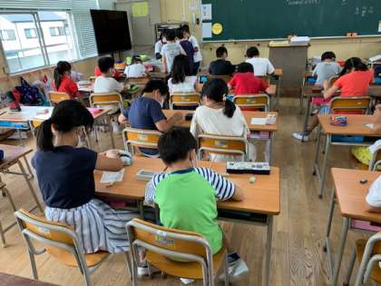 9月14日(月)1時間目、3年1組ではカイコの観察を行っていました。黒板には「4れい虫(だっぴ中)」と書かれていました。脱皮が始まったら観察するようにしているのだなと思いました。2組も漢字の学習をしながら、2人の間にはカイコの箱が置かれていたので、脱皮が始まったら観察するようにしているようでした。