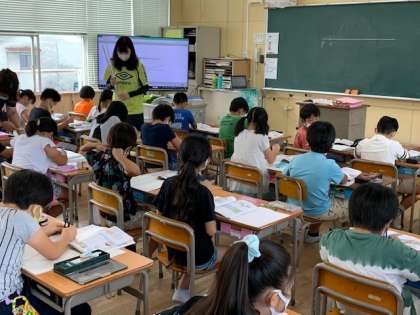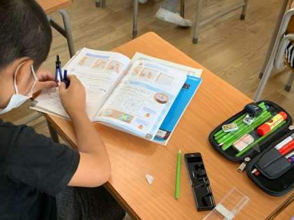 9月15日(火)1時間目、3年1組は算数でコンパスを使って長さを測る学習をしていました。大人にとってはコンパスは簡単なものですが、子どもにとっては円を描く動作が難しいことがあります。さて上手にコンパスを使って測りとれたでしょうか?