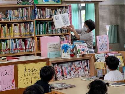 9月16日(水)6時間目、1年2組は図書の時間でした。図書の先生に読み聞かせをしていただいていました。「おしいれのぼうけん」という本で、長編でした。絵が白黒で見にくかったにもかかわらず、子どもたちは集中して聞き、空想の世界に入っている子が何人もいました。