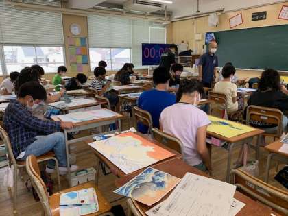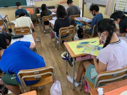 9月18日(金)1時間目、6年1組は図工で浮世絵の模写をしていました。だんだん完成が近づいているように思います。
