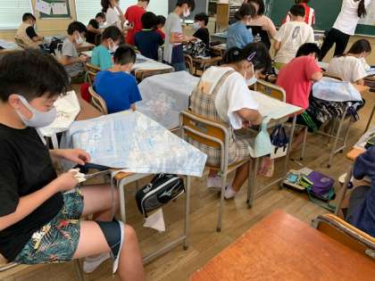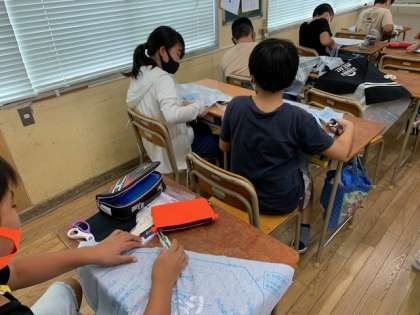 9月18日(金)5時間目、6年2組は家庭科でエプロン作りをしていました。今日は、布を切ってました。