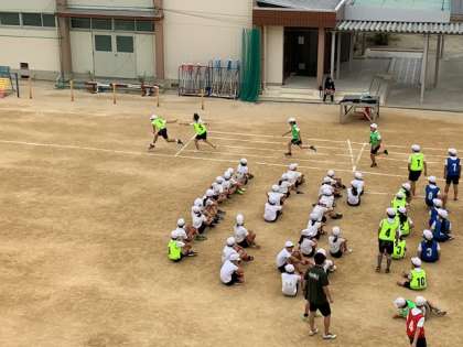 9月23日(水)6時間目、6年は体育でリレーをしていました。前の走者がぎりぎりまで迫ってきて、次の走者が全力でスタートするバトンパスをしているようです。まだうまくバトンをつなげていないペアもありますが、練習を重ねうまくいくようになると、見ていて気持ちの良いリレーになると思います。さらなる高みを目指して頑張ってほしいものです。