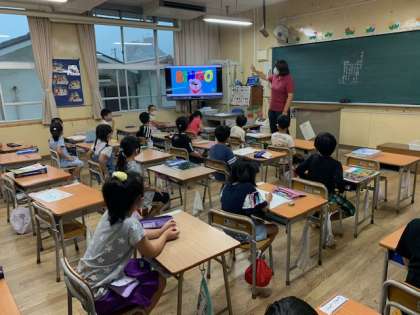 9月25日(木)英語タイムに1年2組はBINGOの歌を歌っていました。歌に合わせて手拍子をしたり、楽しそうでした。次にセブンステップをしました。