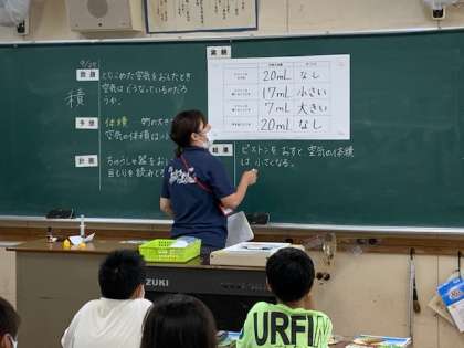 9月25日(金)4時間目、4年1組は理科で空気でっぽうについて学習していました。実験の結果をもとに空気の性質についてまとめているようでした。