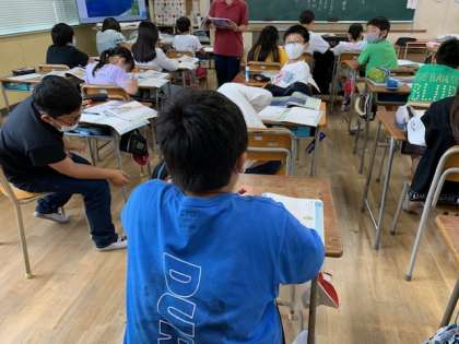 9月25日(金)4時間目、5年1組は道徳で「ひとふみ十年」という題材で学習していました。自然を大切にすることの意味が理解できたかな?