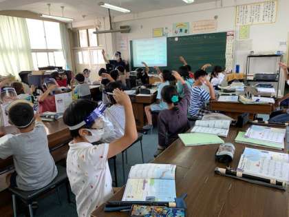 9月28日(月)3時間目、4年2組は音楽でした。リコーダーのきれいな音色が聞こえてきました。そのあと、「とんび」の歌唱になりました。音の高さを手で表しながら、旋律の特徴をつかもうとしていました。ピンヨローが繰り返されるところでは、先生からはとんびが何羽いるだろうかとか、強弱をつけて歌った際にどこからどこへ飛んだだろうかとイメージを膨らます声かけがありました。