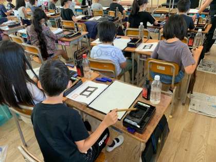 10月2日(金)1時間目、3年1組は書写で「日」を書いていました。準備を終えて、これから注意点を確認して書き始めるところでした。