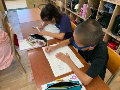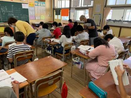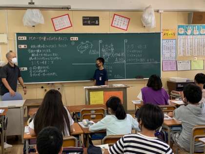 10月2日(金)5時間目、6年1組は算数で比の学習をしていました。比の性質を使って、未知の数量の求め方を考えるという学習でした。子どもたちはしっかり考え、意見を発表していました。