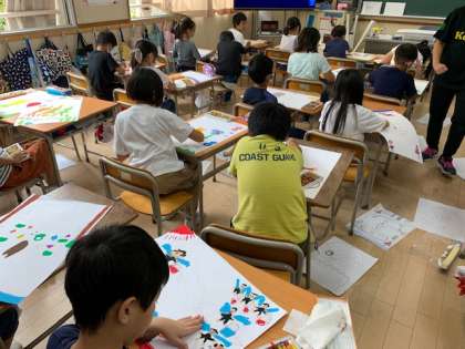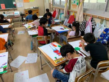10月5日(月)2時間目、2年1組は図工で絵を描いていました。このあいだから作っていた「ふしぎなたまご」から生まれてきた生き物を描いていました。最後にはどのようなものができるのでしょうか。楽しみです。