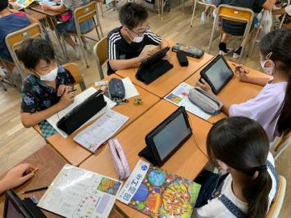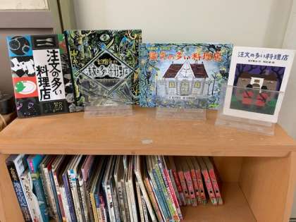10月5日(月)3時間目、5年1組は図工で一版多色刷りを学習していました。注文の多い料理店のお話を版画にするようで、タブレットを使って、様々な場面を参考にして下絵を描こうとしていました。ただ、タブレットの性能が追い付かず画像が表示されないことが多いようでした。廊下の学級文庫には「注文の多い料理店」の本が4冊置かれていました。これも参考にするといいですね。