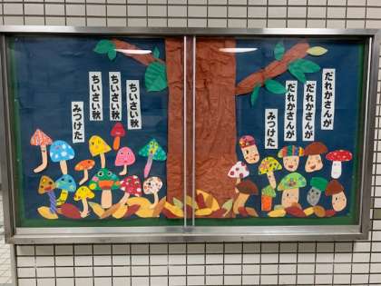 玄関掲示が秋に変わっていました。みんな気付いてくれたかな?