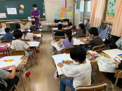 10月6日(火)2時間目、2年2組は図工で「ふしぎなたまご」から生まれた生き物を描いていました。