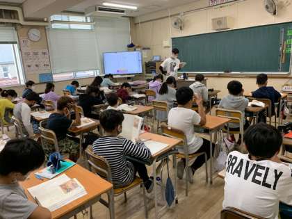 10月8日(木)2時間目、5年2組は国語で、「古文に親しむ」という学習をしていました。「竹取物語」を聞いたり、読んだりして古文の響きを楽しんでいるようでした。