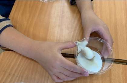 10月12日(月)1時間目、3年1組は先週の続きでモチモチの木の絵を描く人とカイコガの観察をしている人がいました。カイコの幼虫がカイコガに成長し羽をはばたかせていました。