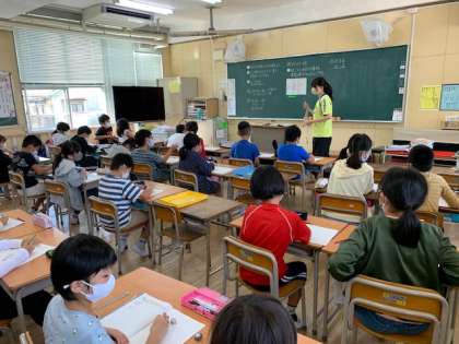 10月13日(火)1時間目、3年1組は算数で23×3の計算の仕方を考えていました。位ごとにわけて計算したり、ひっ算を使ったりすると簡単にできることを発見しました。