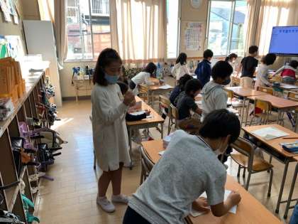 10月20日(火)1時間目、2年1組は算数でした。最初に7の段の九九を覚えていました。「のぼり」や「くだり」「カード」等いろいろな言い方の練習を隣に座っている人としていました。しっかり覚えられたかな?