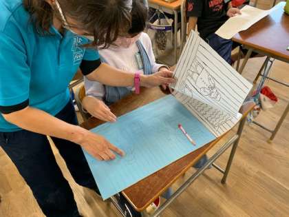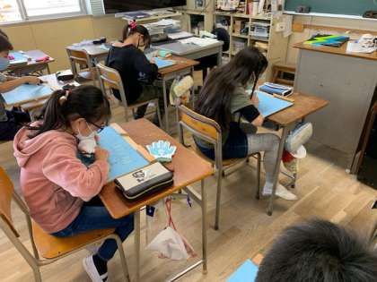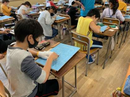 10月20日(火)5時間目、5年1組は図工で版画をしていました。彫刻刀で手を切らないように慎重に彫っていました。