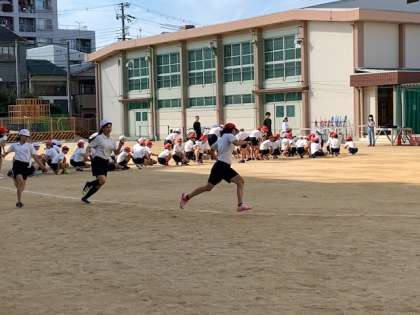 10月21日(水)6時間目、6年は体育で徒競走とリレーの練習をしていました。スピードが速く、カーブで腕を回している子が多いように思いました。