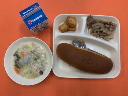 本日の給食 公開日 2020/10/22 更新日 2020/10/22 お知らせ 10月22日(木)白菜のクリーム煮、厚揚げのピリからじょうゆかけ、豚肉とれんこんのオイスター炒め、黒糖パン、牛乳 いいね(0)