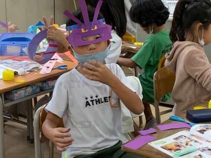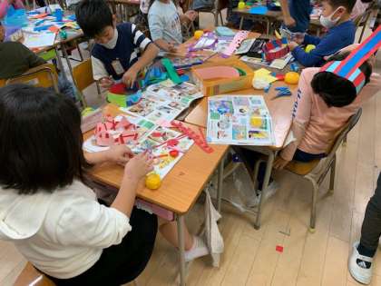 10月22日(木)6時間目、2年2組は図工で「わっかでへんしん」を作っていました。みんな楽しそうに飾りをつけていました。