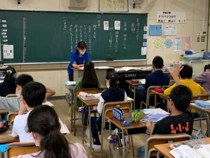 10月23日(金)2時間目、5年1組は道徳で「真由、班長になる」を学習していました。「琵琶湖フローティングスクール」へ参加した、真由が班長になり、直面した問題に、真由はどのように対応したのでしょう。自分たちの問題として学ぶことができたでしょうか。