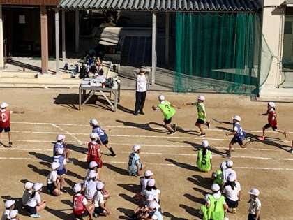 10月27日(火)4時間目、4年生は体育でと競争とリレーの練習をしていました。リレーのバトンパスをよく見ますと、バトンをもらう人の位置が少しづつ違います。走力がある人が長く走れるように自分たちで工夫しているのだと思います。