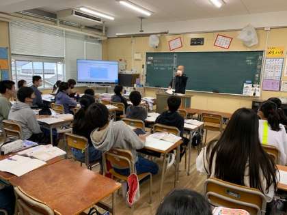 11月2日(月)1時間目、6年1組は算数で「比例のグラフからわかること」を学習していました。