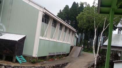 でもどしゃぶりだそうです。説明会であったかもしれませんが、左に見えている建物が体育館です。粉浜小学校の体育館くらい広い(言い過ぎ?)ので、2クラスなら充分楽しく室内ゲームができます。