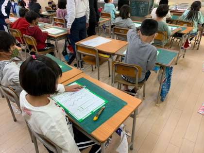 11月5日(木)4時間目、2年1組は図工でカッターナイフの使い方を練習していました。力の入れ具合を調整していろいろな線を切ることができたかな?