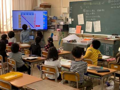 11月10日(火)2時間目、2年1組は算数で九九の表を見ながら、かけ算のきまりを見つけていました。