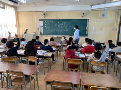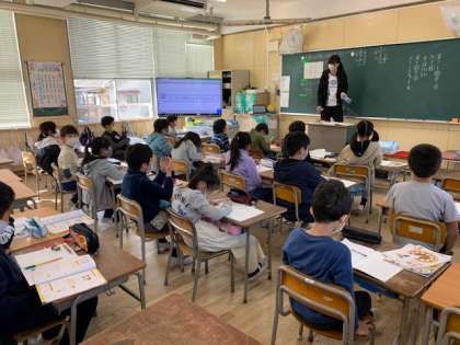 11月11日(水)1時間目、3年1組は算数で学級を2分割して学習していました。小数のひか算のしかたを考えていました。