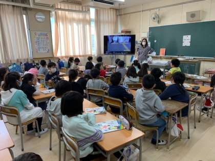 11月12日(木)2時間目、2年1組は公共施設の一つ、駅について学習していました。階段やエスカレーターの前にある黄色いぶつぶつは何のためにあるのかを考えていました。先生が駅探検をして撮ってきた写真を使って学習していました。お家の人と自分で確かめてみるといいですね。