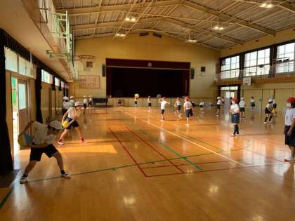 11月12日(木)4時間目、4年2組は体育でした。体育館で二人組でボールをいろいろな投げ方で投げていました。この後、体育でどのような運動が展開されたのでしょうか?