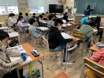 11月13日(金)1時間目、5年1組は道徳で「名前のない手紙」を学習していました。教材は、クラスで仲間はずれにされている様子が描かれていました。勇気をもって正義を表現するミッコという子が現れて、仲間はずれが解消にむかうお話です。子どもたちはこのお話から何を感じたでしょうか。道徳ノートに、たくさん自分の考えを書いている人がいました。