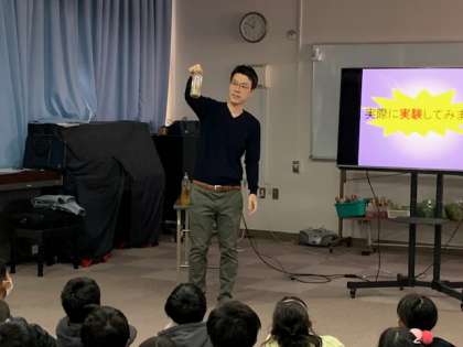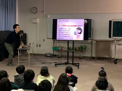 11月13日(金)2時間目、6年生はふれあいルームで学校薬剤師の先生から「くすりの正しい使い方」を教えていただきました。薬の飲み方で、お茶で飲んだ場合について実験をしていただきました。貧血の薬にお茶を混ぜると黒くなりました。そうなると吸収が悪くなり効果が十分発揮できないと教えていただきました。薬は用法、用量を守ることが大事であることがよくわかりました。