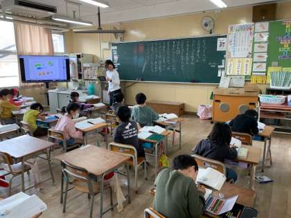 11月16日(月)1時間目、1年1組は国語で「「おとうとねずみチロ」を学習していました。今日は登場人物を確認したり、おばあちゃんからの手紙がどんな色だったか等想像をふくらませたりしていました。