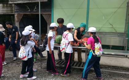 登山前の腹ごしらえ(5年林間学習)