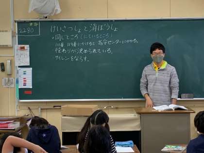 11月24日(火)1時間目、3年2組は社会科で警察署と消防署について学習していました。