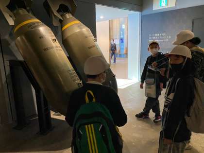 11月27日(金)6年の社会見学は大阪城公園での昼食を終え、ピースおおさかに移りました。戦争の悲惨さを身をもって学んでくれることでしょう。