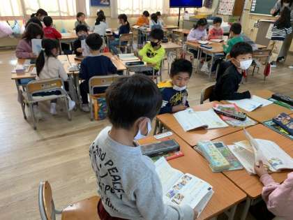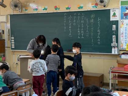 12月3日(木)4時間目、1年2組は「おとうとねずみチロ」を音読劇にするために、役割を班で話し合っていました。